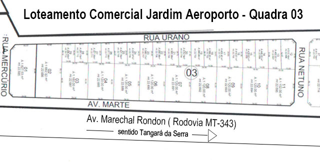 TERRENO COM 1.160,00M² - LOTE 03 DA QUADRA 03 - LOTEAMENTO JARDIM AEROPORTO